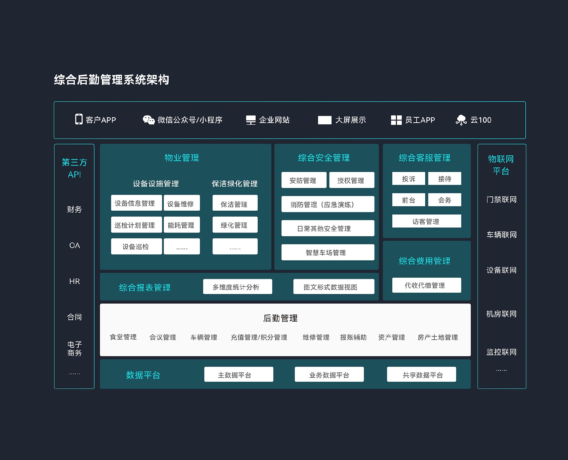 长期以来,某通讯企业面临房屋、土地、租赁物业地点众多且分布广泛的管理挑战,由于缺乏信息系统支持,管理难度极大。目前,物业、安防、设备等管理仍主要依赖纸质或电子文档以及人工定期巡检,这种方式效率低下,且缺乏系统化、规范化的管理。此外,会议管理、车辆管理、行政管理等模块各自为政,甚至有的模块存在多个系统,需频繁切换界面进行操作和查询,极为不便,无法快速有效地解决问题。